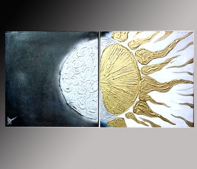 Quadri Moderni Astratti Dipinti A Mano Olio Su Tela Sole E Luna Abstract Dipinto Ebay