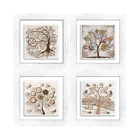 Lupia Quadro Su Ceramica Set 4pz White Tree 21x21 Cm Decorazioni Per Interni Arte