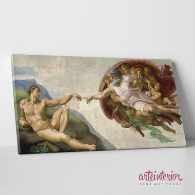 Michelangelo Creation Of Adam Hr Print On Canvas Canvas Sistine Chapel Ebay