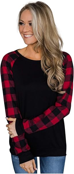 Landove T Shirt Natale Donna Maglia Scozzese A Quadri Blusa Asimmetrica Amazon It Abbigliamento