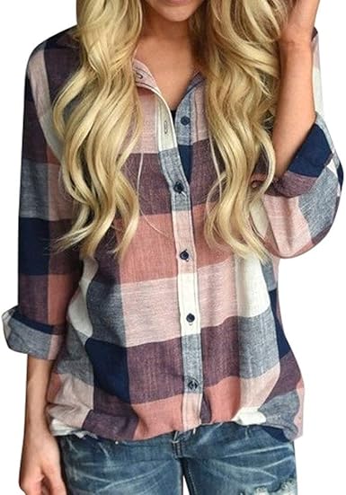 Bluse E Camicie Abbigliamento Bella Hxr Maglie Donna Estive A Quadri Blusa Scollo V Classico Camicia Elegante Sciolto Blusa Scozzese Magliette Donna Estive Particolari Scozzese T Shirt Camicetta Donna Manica Lunga Casuale S 5xl