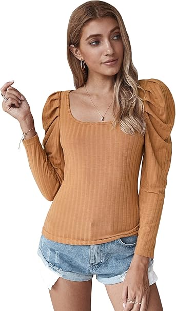 Blusa Donna Body Camicetta Con Maniche Lunghe A Sbuffo Scollo Quadrato Aderente Casual Elegante Alla Moda Amazon It Abbigliamento