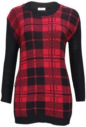 Baleza Maglione A Quadri Maniche Lunghe Donna Rosso Taglia Unica Amazon It Abbigliamento