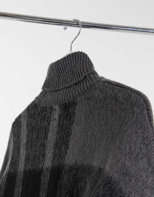 Asos Design Tall Maglione Testurizzato Con Collo Alto Antracite Sfumato A Quadri Asos