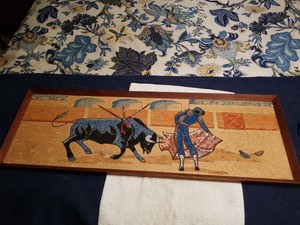 Vintage Pebble Mosaico Arte Quadro Teca Bull Fighter Matador 36 5 Por 12 5 Ebay