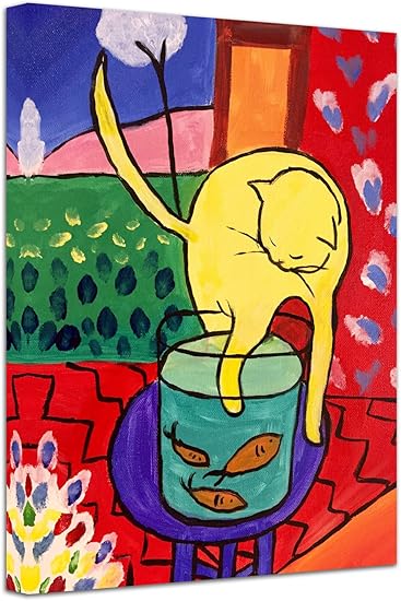 Punto Digital Gatto E Pesci Matisse Quadro Cm 70x100 Moderno Intelaiato Stampa Su Tela Cotone Telaio In Legno Spessore Cm 2 Amazon It Casa E Cucina