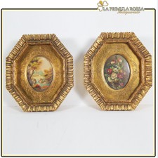 Antica Coppia Di Quadri Miniature Dipinti Olio Su Tavola Cornici In Legno Dorato Cornici Cornici In Legno Miniature