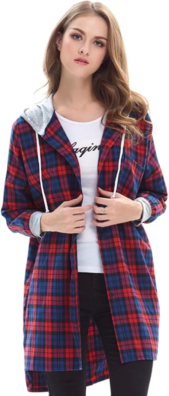 Jltph Camicia A Quadri Con Cappuccio Donna Eleganti Manica Lunga Bluse E Camicie Hoodie Moda Quadretti Coulisse Lungo Felpa Con Cappuccio Amazon It Abbigliamento