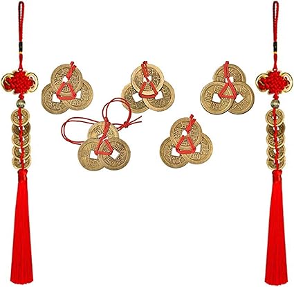 Ppx 5 Set Monete Cinesi Fortuna Moneta Portafortuna Monete Feng Shui Monete Con La Striscia Rossa E 2 Nodo Cinese Con Monete Fortunate Monete Feng Shui I Ching Fortuna Monete Per Buona Fortuna