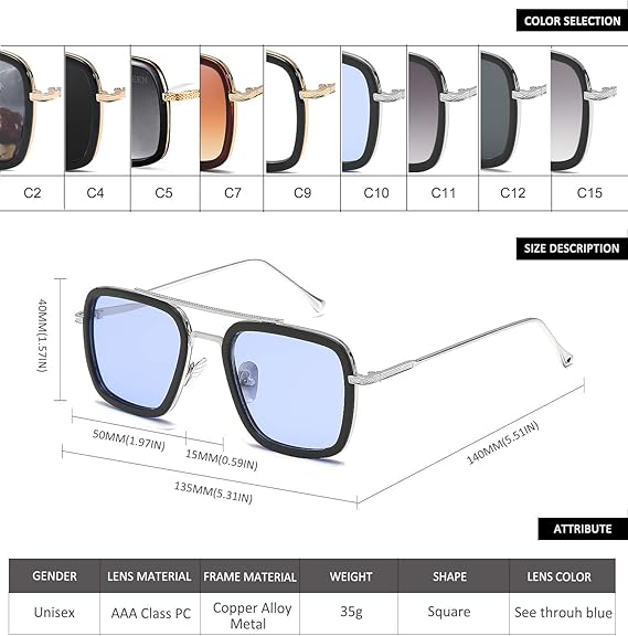 Sheen Kelly Occhiali Da Sole Retro Occhiali Da Sole Tony Stark Montatura Per Occhiali Quadrata In Metallo Per Uomo Donna Downey Occhiali Da Sole 1 1 Amazon It Abbigliamento