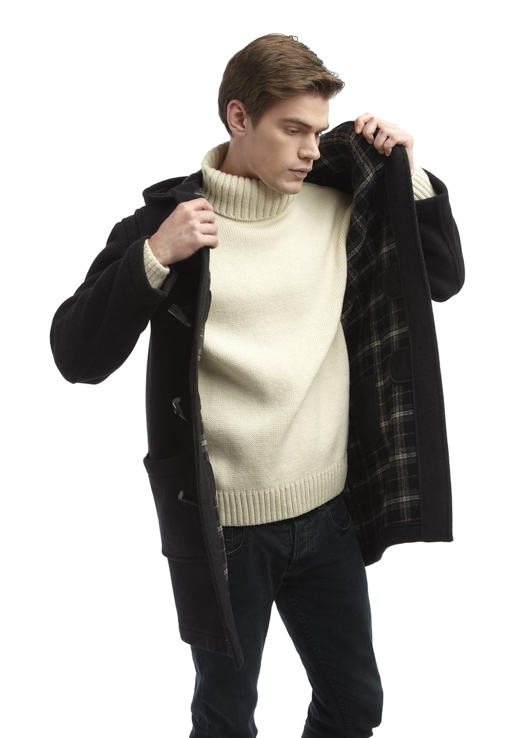 Cappotto Giacca Uomo Grigio Nero Quadri Slim Fit Giubbotto Montgomery Pelliccia Eur 29 50 Picclick It