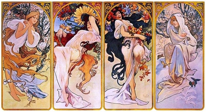 Luxhomedecor Quadri Alfons Mucha Le Quattro Stagioni Four Seasons 4 Pezzi 40x20 Cm Stampa Su Tela Con Telaio In Legno Arte Arredo Amazon It Casa E Cucina