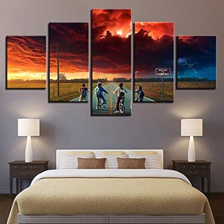 Cctxue Murando Arte Tela Murale Arte Quadri Moderni 5 Pezzi Painting Canvas Wall Poster 3d Stampa Grafica Immagini Lufficio Domestico Decorazione Moderna Stranger Things 25 20 15x10cm Frame Casa E Cucina Dipinti