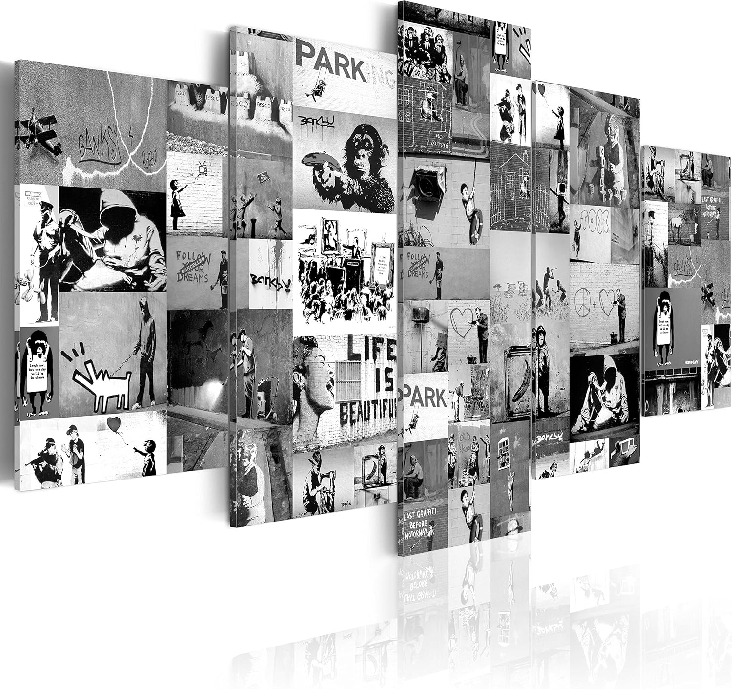 Murando Quadro Acustico Astratto Banksy 100x50 Cm Xxl 5 Pezzi Quadri Moderni Su Tela Non Tessuta Stampa Protezione Dai Rumori Isolamento Acustico Fonoassorbente I C 0092 B N Poster E Stampe Casa E Cucina