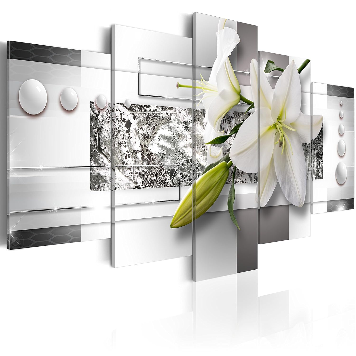 Decorazioni Per Interni Murando Quadro 100x50 Cm 5 Pezzi Stampa Su Tela In Tnt Xxl Immagini Moderni Murale Fotografia Grafica Decorazione Da Parete Astratto Fiori Argento Grigio Bianco Verde A C 0077 B M 100x50 Cm