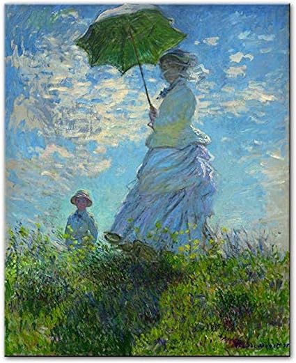 Wjy Donna Con Parasole Quadri Su Tela Di Claude Monet Impressionista Stampe Su Tela Riproduzioni Su Tela Per La Decorazione Della Parete Di Casa 60cm X 90cm Senza Cornice Amazon It Casa E