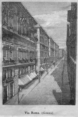 Stampa Antica Old Antique Print Liguria Genova Via Roma Rara Vista 1882 Ebay
