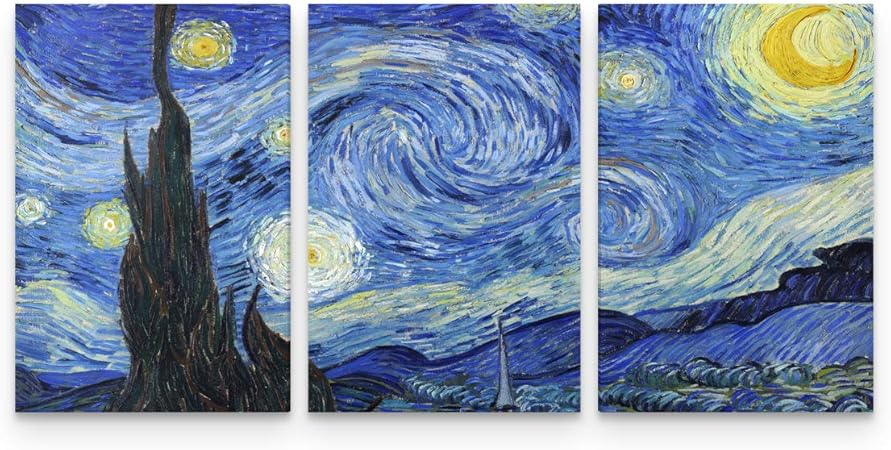 Quadro Van Gogh Noite Estrelada Decorativo Para Sala 3 Telas Amazon Com Br