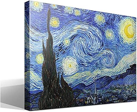 Cf Cuadrosfamosos Es Cuadrosfamosos Es Quadro Stampa Su Tela Canvas Notte Stellata Di Van Gogh 75 Cm X 55 Cm Amazon It Casa E Cucina