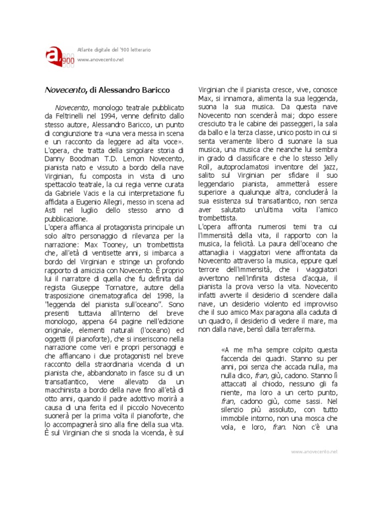 Alessandro Baricco Novecento Un Monologo Pdf Free Download