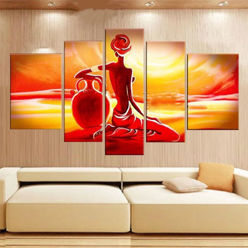 Hand Painted Colorful Nudo Donna Africana Pittura A Olio Modern Home Decor 5 Panel Wall Art Immagini Rosso Acrilico Quadri Di Figura Women Oil Paintings Figure Paintingpainting Modern Aliexpress