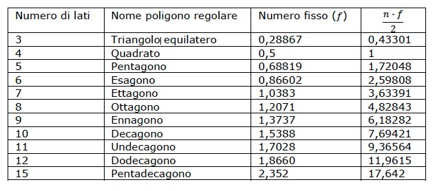 Nell apotema del quadrato f. Il numero fisso è una vera e propria costante tipica di ciascun poligono regolare che dipende solo dal numero dei lati del poligono e che si indica con.