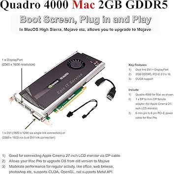 Amazon Com Epic It Service Quadro 4000 For Mac By Nvidia For Apple Mac Pro 2gb Gddr5 Pci Express Gen 2 X16 Dvi I Dl Displayport Directx Boot Camp Cuda And Opencl Profesional