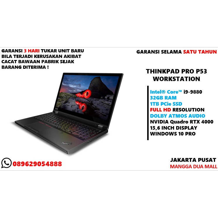 Thinkpad P53 Workstation Nvidia Quadro Rtx 4000 32gb Ram I9 9800 Shopee Indonesia