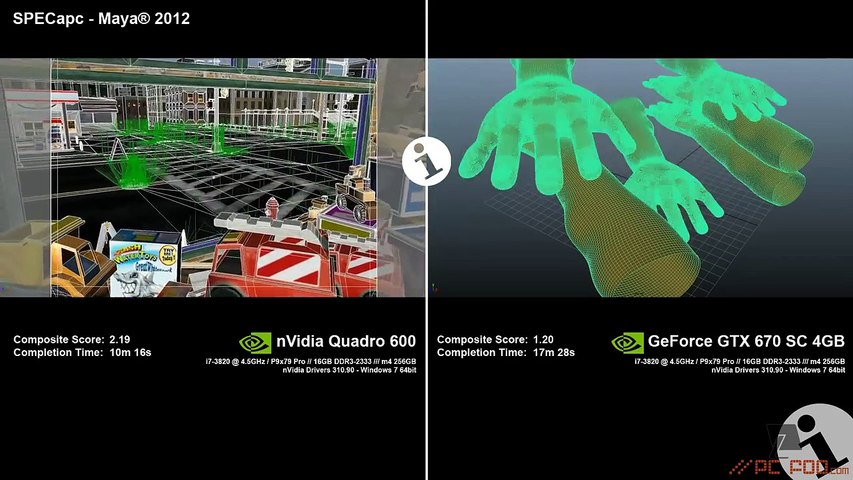 Nvidia Quadro 600 Vs Gtx 670 Sc 4gb In Specapc For Maya 2012 Pcfoo Com Youtube