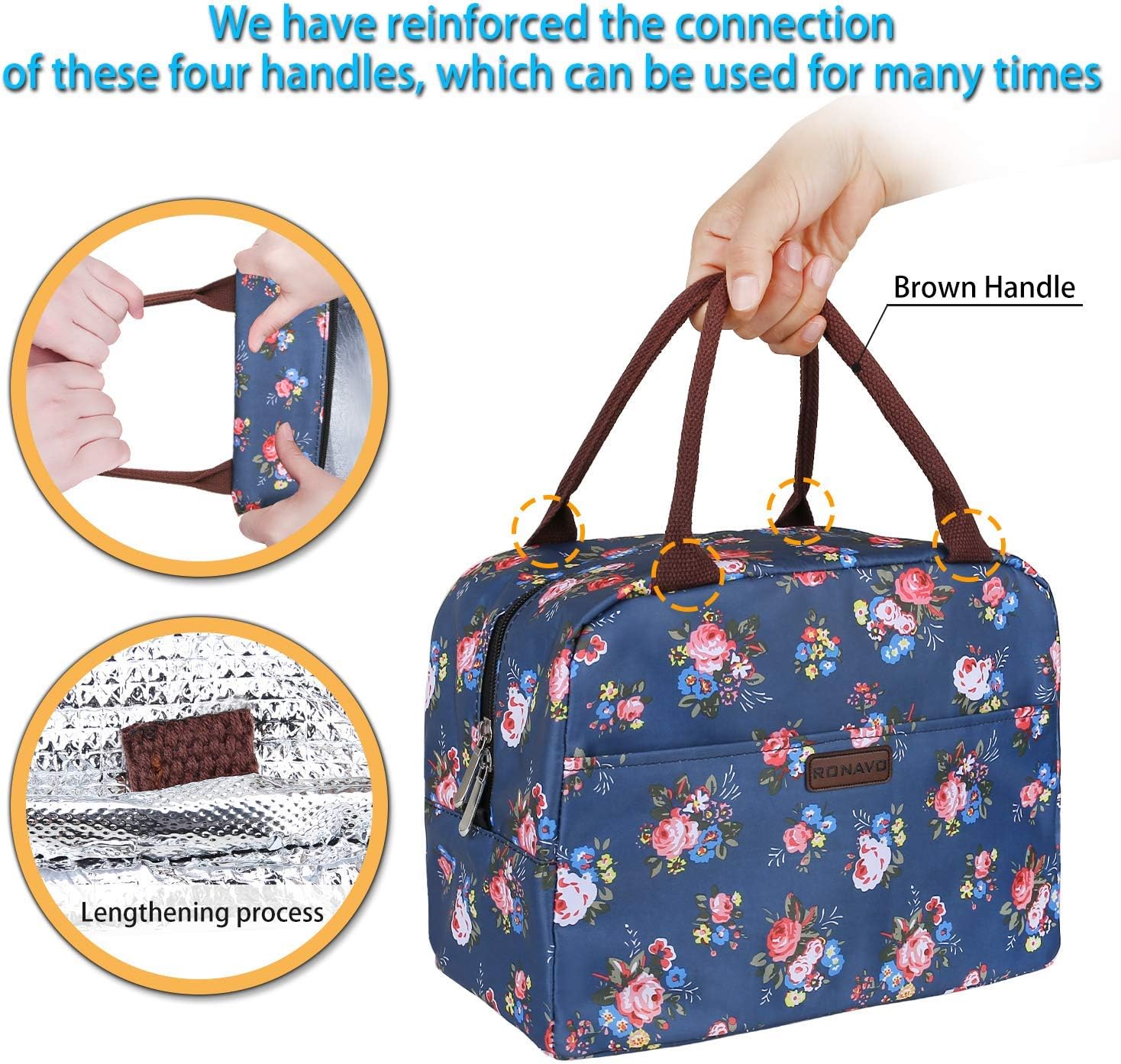 Peony Ronavo Lunch Bag Cooler Bag Women Tote Bag Insulated Lunch Box Water Resistant Thermal Lunch Bag Soft Leak Proof Liner Lunch Bags For Women Picnic Boating Beach Fishing School Work Borse Porta Alimenti Casa E Cucina