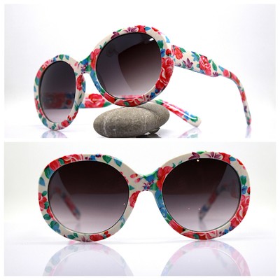 Occhiali Da Sole Donna Rotondo Grande Hawaii Fiori Bianco Rosso Blu Boho Hippy Ebay