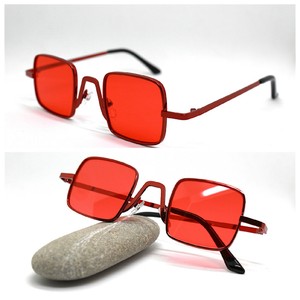 Occhiali Da Sole Uomo Donna Quadrato Metallo Rosso Lente Rossa Steampunk Rock Ebay