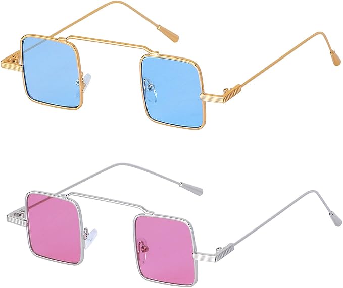 Haichen 2 Paia Di Occhiali Da Sole Quadrati Piccoli Con Montatura In Metallo Occhiali Da Sole Vintage Occhiali Da Sole Con Protezione Uv Per Uomo Donna Colori Caramelle Argento Rosa Oro