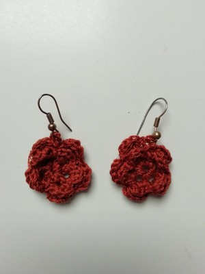 Orecchini All Uncinetto Fatti A Mano Fiori Cotone Rosso Ruggine Piccoli Ebay