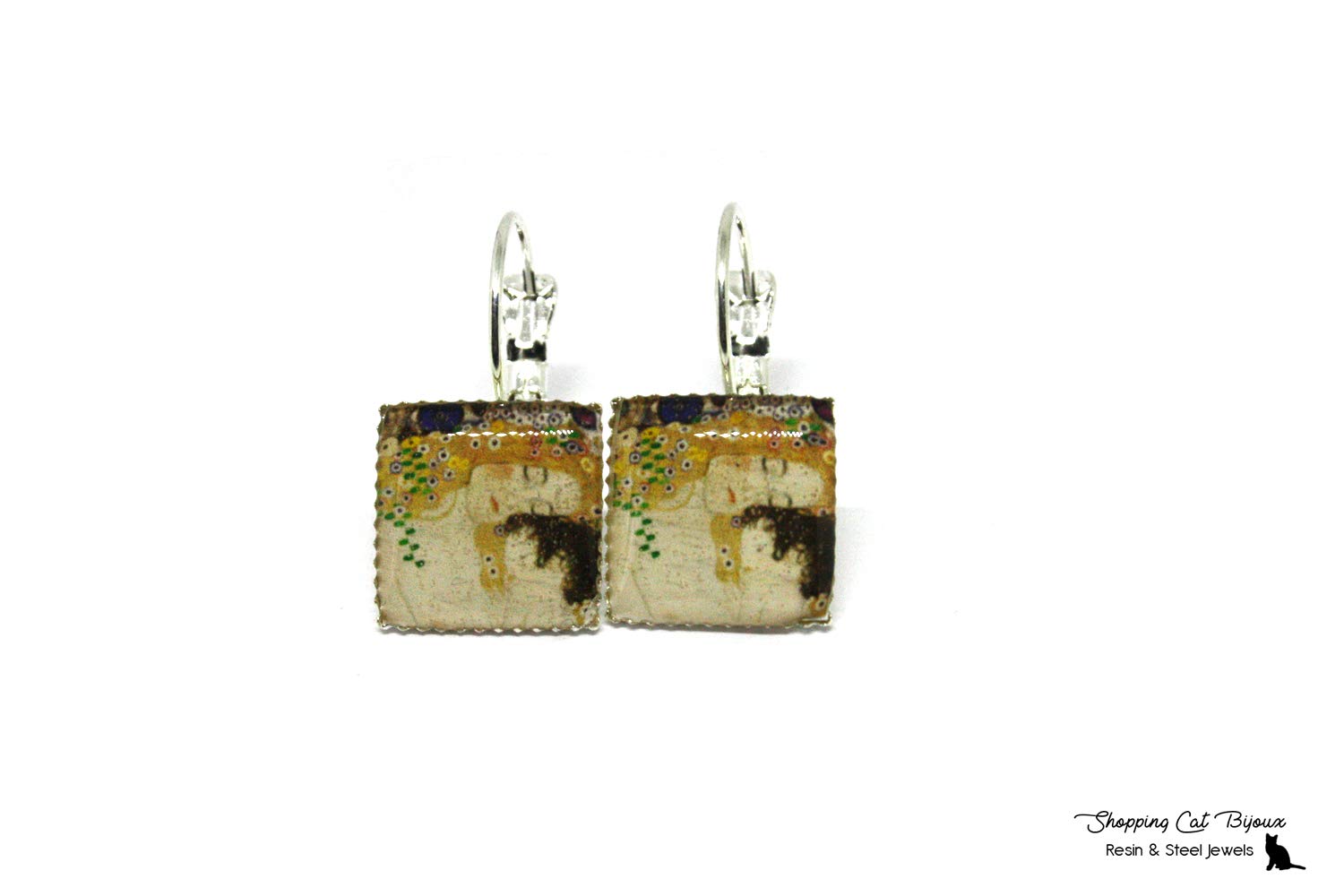 Orecchini Quadrati In Resina E Ottone Klimtmaternita Prodotti Handmade Gioielli