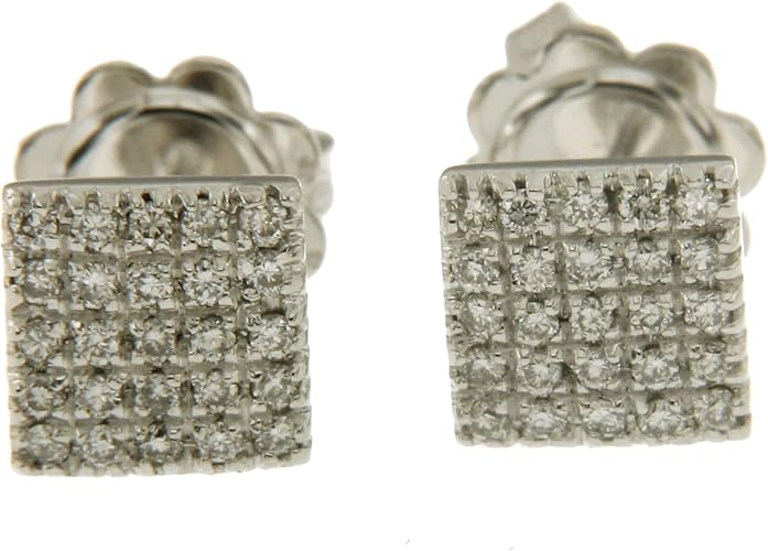 Orecchini Quadrati Con Pave Di Diamanti In Oro Bianco 750 18kt N277 Amazon It Gioielli