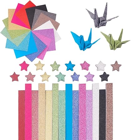 Nbeads Origami 560 Fogli 14 Colori Glitter Star Gru Pieghevole A Forma Di Carta Quadrati Stripe Colore Misto Amazon It Casa E Cucina