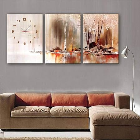 Golden Flower Moderno Soggiorno Sala Da Pranzo Decorazione Pittura Orologio Muto Dipinto Su Tela Orologio Da Parete Tripla Fumo E Pioggia In Riva Al Lago Contiene Cornici Orologi E Quadri 3pcs Amazon It Sport