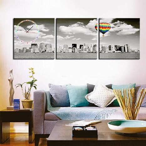 Chuan Han Moderno Soggiorno Sala Da Pranzo Decorazione Pittura Muto Orologio Tela Pittura Triplo Orologio Da Parete Citta Scenario Serie Contenente Cornici Orologi E Quadri 3pcs 30 30cm Amazon It Sport E