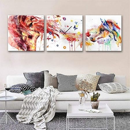 Golden Flower Moderno Soggiorno Sala Da Pranzo Decorazione Pittura Orologio Muto Dipinto Su Tela Orologio Da Parete Triplo Colorato Cavalli Contenente Cornici Orologi E Quadri 3pcs 30x30cm Amazon It Sport E Tempo Libero