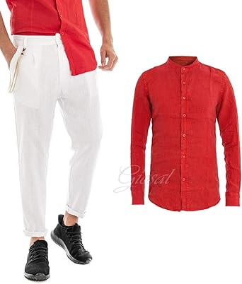 Camicia Rossa Uomo A Righe Bianche Orlando Collo Francese