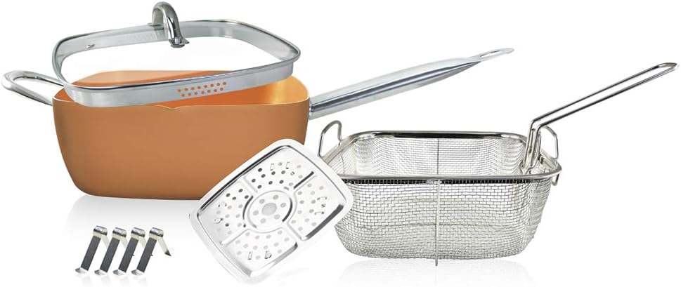 Copper Pan Chef Padella In Rame Quadrata Coperchio Cestello Per Friggere Base Vapore