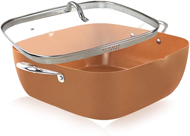 Best Copper Padella Quadrata Casseruola In Rame Cm 24 5 X 24 5 Con Friggitrice Coperchio