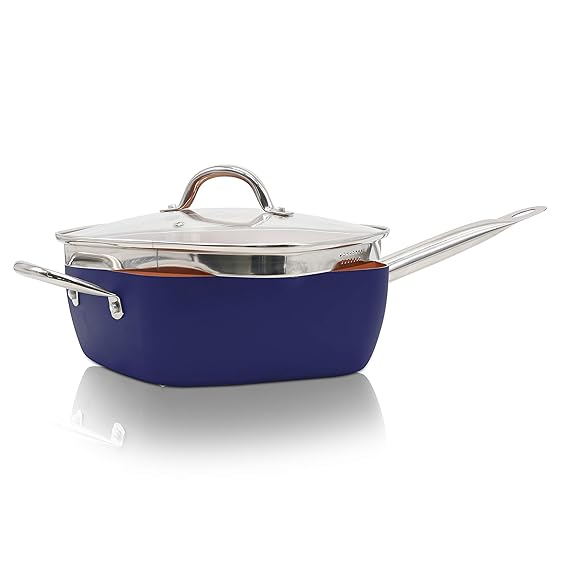 Padella Quadrata In Rame Da 30 5 Cm Con Coperchio In Ceramica Antiaderente Perfetta Per Saute E Grill Amazon It Casa E Cucina