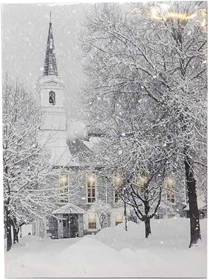 We Love Christmas Quadro Led Paesaggio Innevato Con Chiesa 30x40cm Amazon It Casa E Cucina