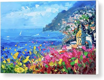 Positano Costiera Amalfitana Stampa Artistica Su Tela Quadro Moderno Paesaggio Marino 62x50 Cm Amazon It Casa E Cucina