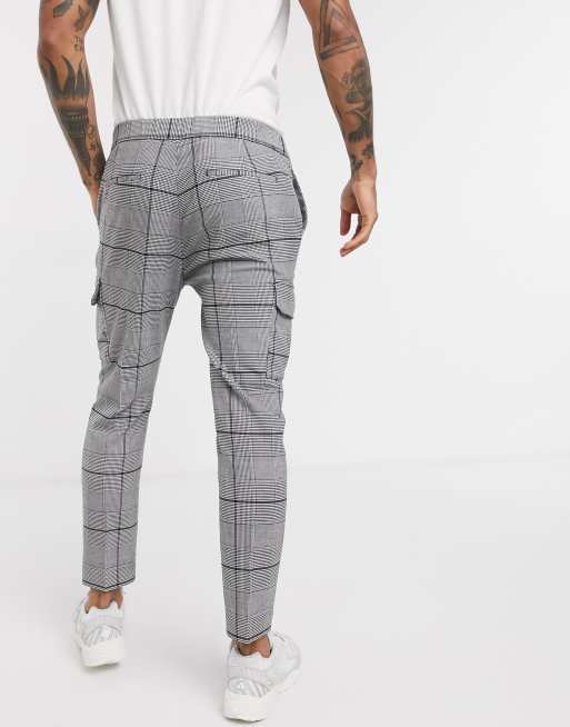 Topman Pantaloni Cargo Neri E Bianchi A Quadri Asos
