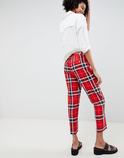 River Island Pantaloni Skinny Al Polpaccio A Quadri Scozzesi Rossi Rosso Stileo It