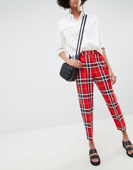 Bershka Pantaloni A Quadri Carrot Neri E Rossi From Asos On 21 Buttons