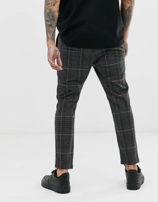 Pantaloni Grigi A Quadri Tono Su Tono New Look Grigio Uomo